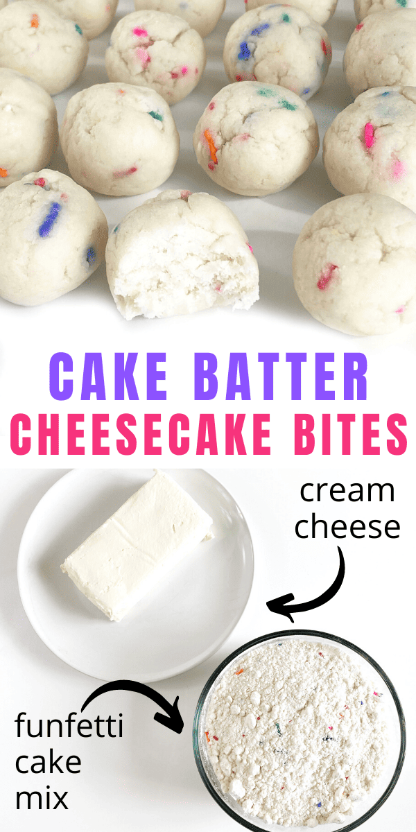 With only two ingredients, funfetti cake mix and cream cheese, these Cake Batter Cheesecake Bites are the ultimate indulgent dessert!