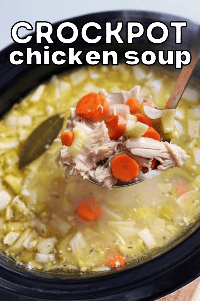 What I like about this slow cooker chicken soup recipe is that it’s not only delicious, but it makes a ton of leftovers. That means that lunches or dinners are covered for the next two or three days!